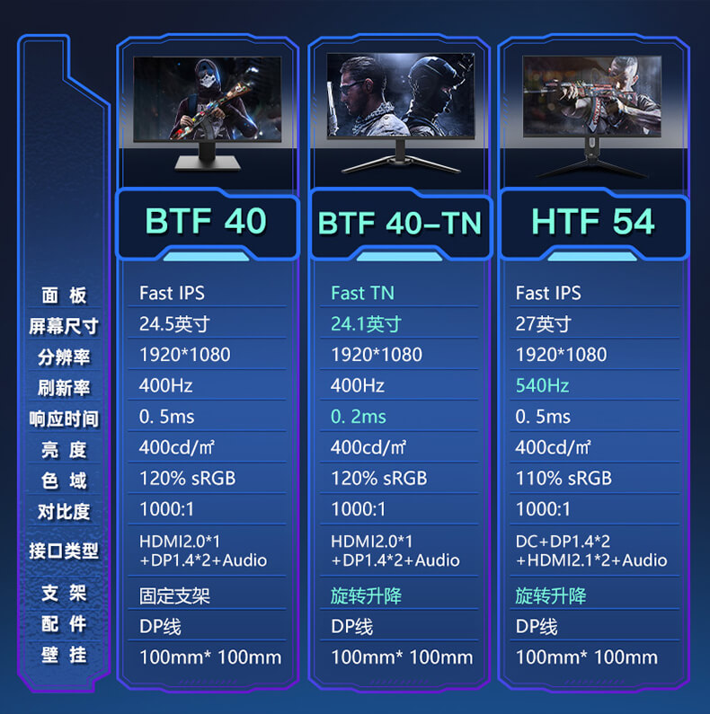 | 刷新率 Refresh rate | 400Hz | ||