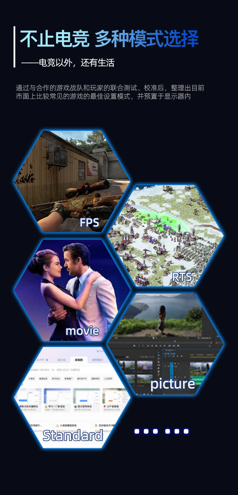 | 情景模式(6种:标准、图片、电影、游戏、FPS、RTS) | |||